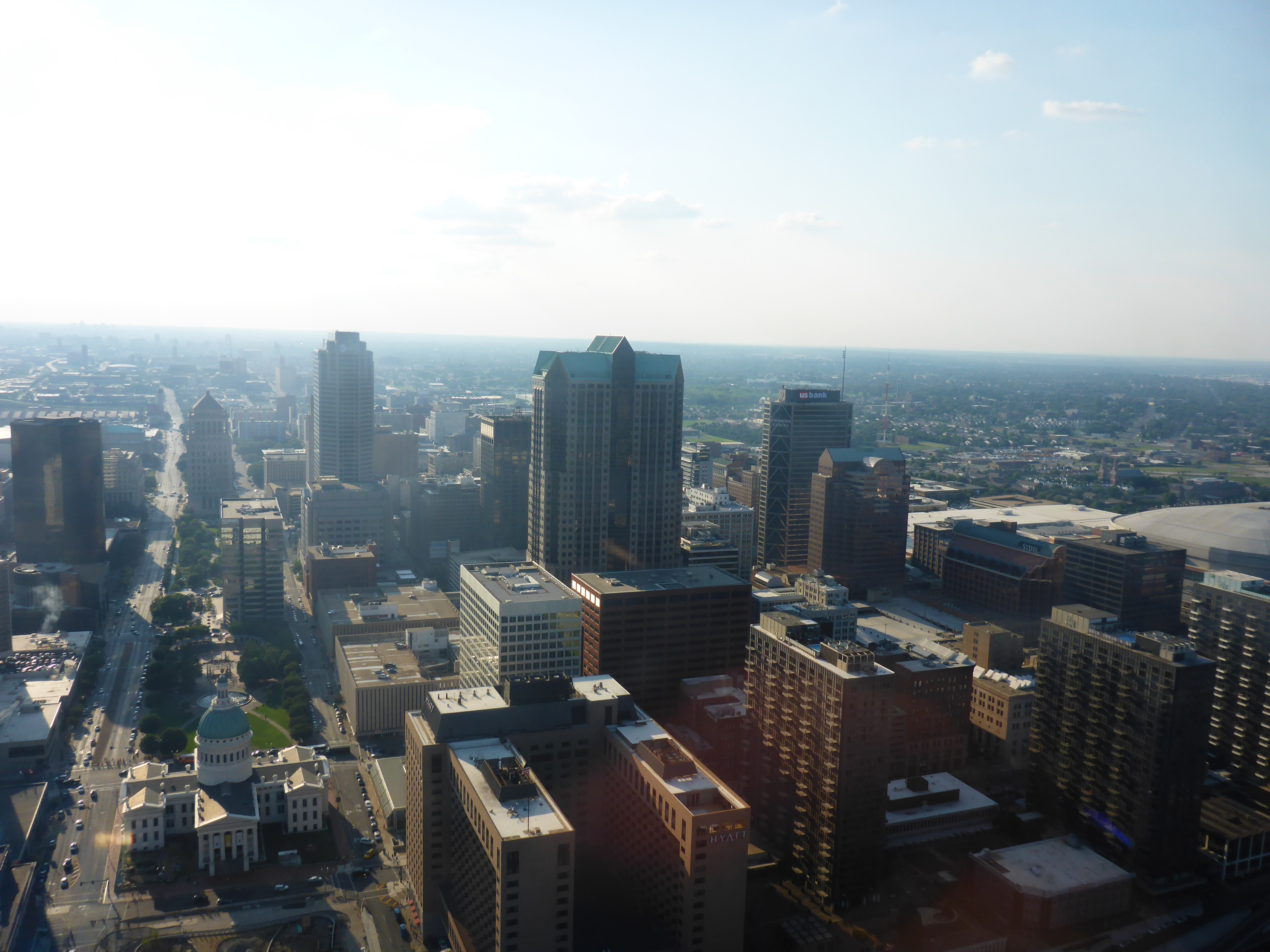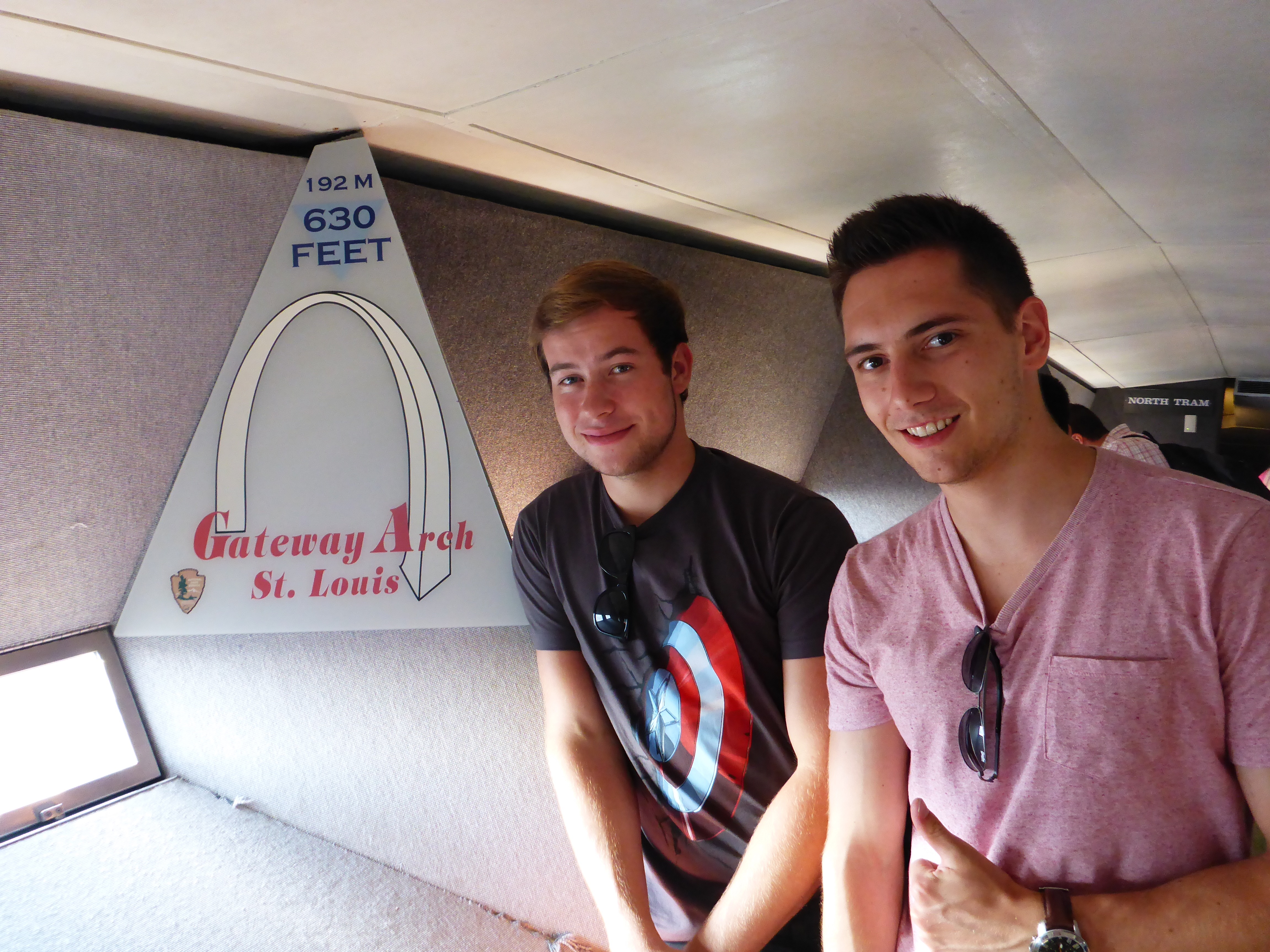 Mit Alex sind wir dann auch am nächsten Tag nach St. Louis Downtown gefahren um uns dort die Sehenswürdigkeiten anzuschauen. Natürlich fällt einem sofort The Arch ins Auge. Es ist das höchste Gebäude der Stadt, allerdings kein normales Hochhaus sondern ein riesiger 192 m hoher Bogen der das Tor zum Westen symbolisieren soll und ich war echt überrascht als Alex meinte, dass wir ihn begehen werden. Von dort oben hatte man nen bomben Ausblick über die Stadt und noch weiter. Vor allem war es ein komisches Gefühl wenn man runtergeguckt hat und man freie Sicht bis auf den Boden hatte. Natürlich war es da oben so voll das man sich die Klinke von den verdammt engen Aufzügen gegenseitig in die Hand gegeben hat, war also nicht viel Platz zum Rangieren