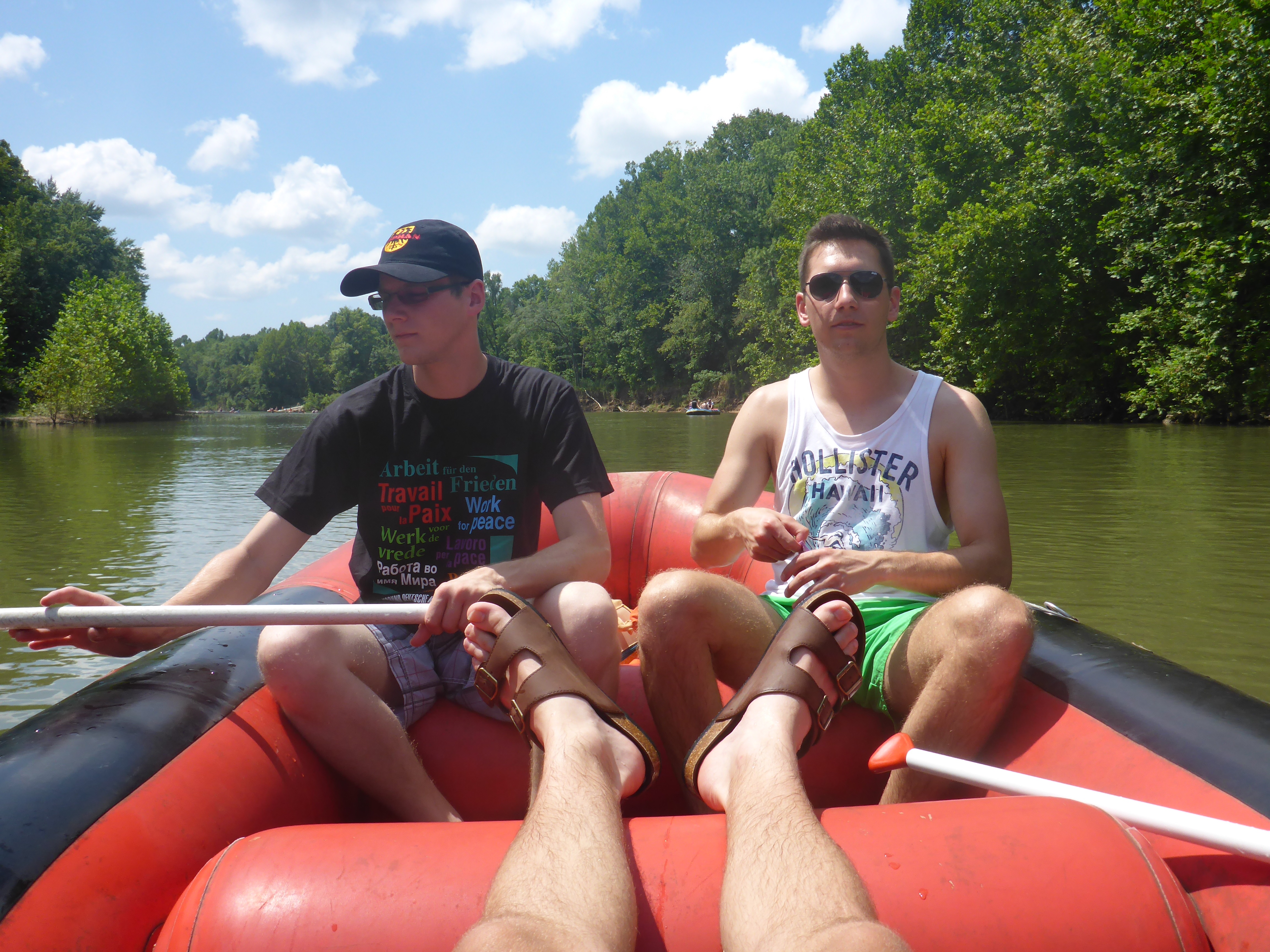 Der nächste Tag war dann ein wenig entspannter. Wir verbrachten den ganzen Tag mit Alex und unseren beiden Gasteltern auf einem Raftingboat und fuhren damit einen Nebenarm des Mississippi hinunter. Es war wirklich idyllisch. Man hatte um den Fluss nur die reine Natur mir ihren dicken Bäumen und ihren Klippen und kleinen Bergen. Das Wasser war herrlich warm und die Sonne brutzelte einem eine schöne Bräune in die Haut. Hatte was von Urlaub 😉