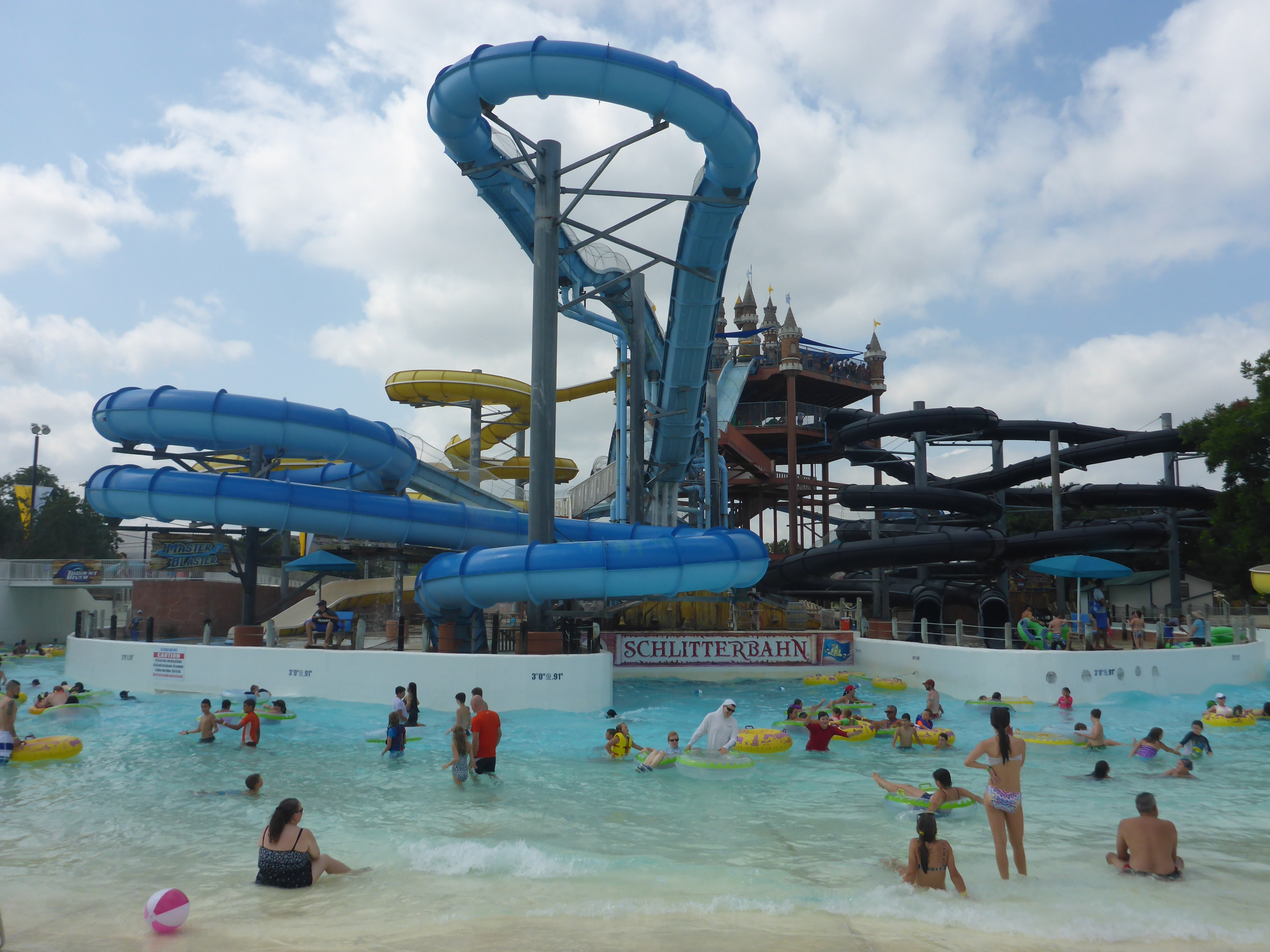 Am nächsten Tag sind wir mit Shelby und Julia in einen riesigen Wasserfreizeitpark gefahren. Er hieß wirklich Schlitterbahn, weil diese kleine Stadt von deutschen Einwanderer gegründet wurde und somit haben dort auch fast alle Geschäfte und Läden deutsche Namen. Ist schon irgendwie Komisch wenn auf dem Wasserturm der Stadt in alt deutscher Schrift: ,, Hier ist das Leben schön! ´´ steht.