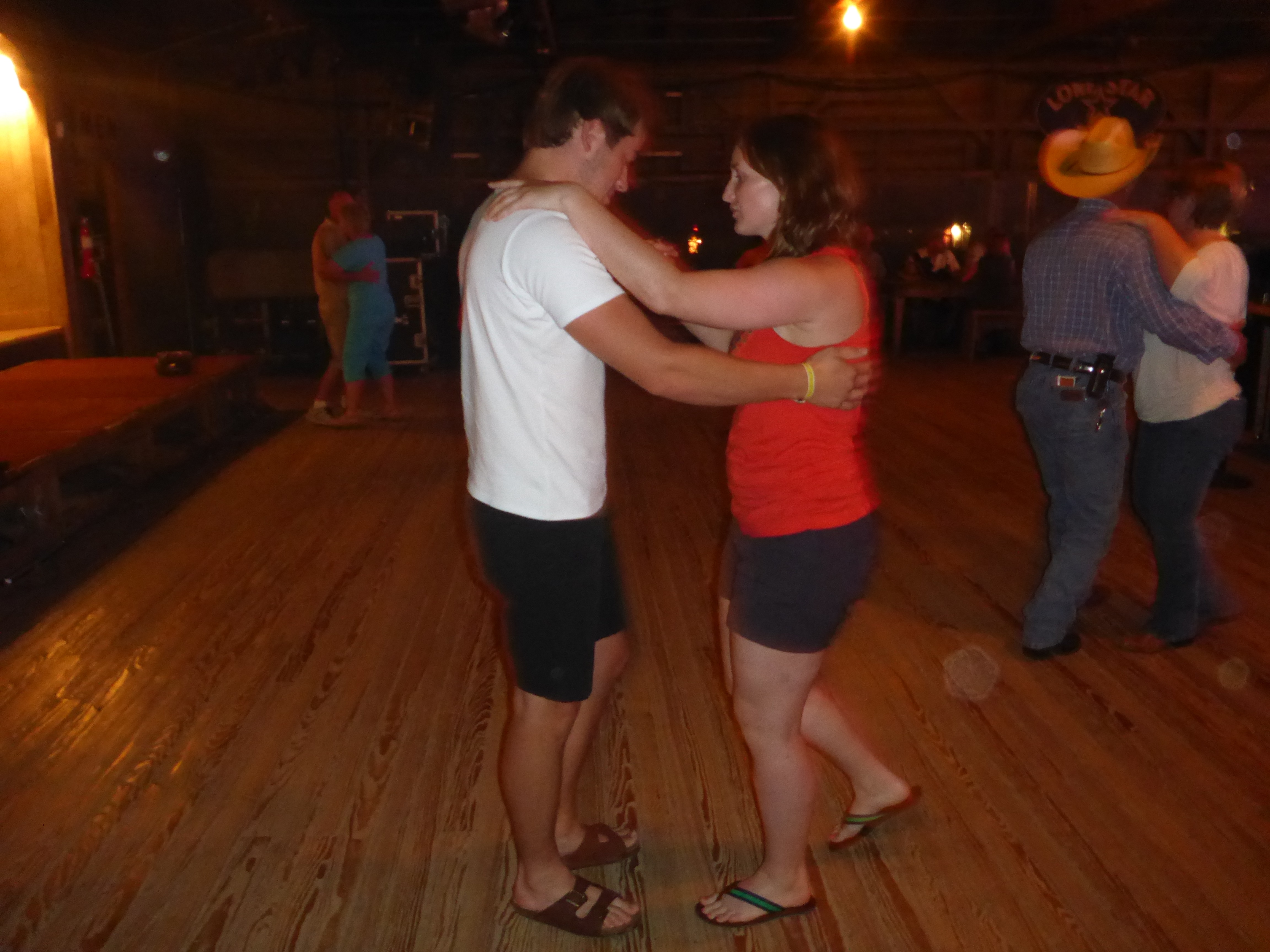 Nach so einem tollen aber sehr anstrengenden Tag sind wir dann in ein typisches texanisches Restaurant essen gegangen, natürlich gab es Fleisch vom Grill. Alles im alten Stil gehalten, also es sah aus wie ein alten Saloon. Neben an hat dann noch eine Band modern Country gespielt. Es sah echt aus wie in einem Western Film. Zur Musik tanzten dann noch so etwa 20 Mädchen, die gerade mit der High School fertig geworden sind, einheitlich Line Dance und mir hat meine Gastschwester dann noch gezeigt wie man Two Step tanzt, das ist hier so der Disco Fox für Texaner. Es war ein herrlicher Abend und ich find die Musikrichtung einfach klasse!!!