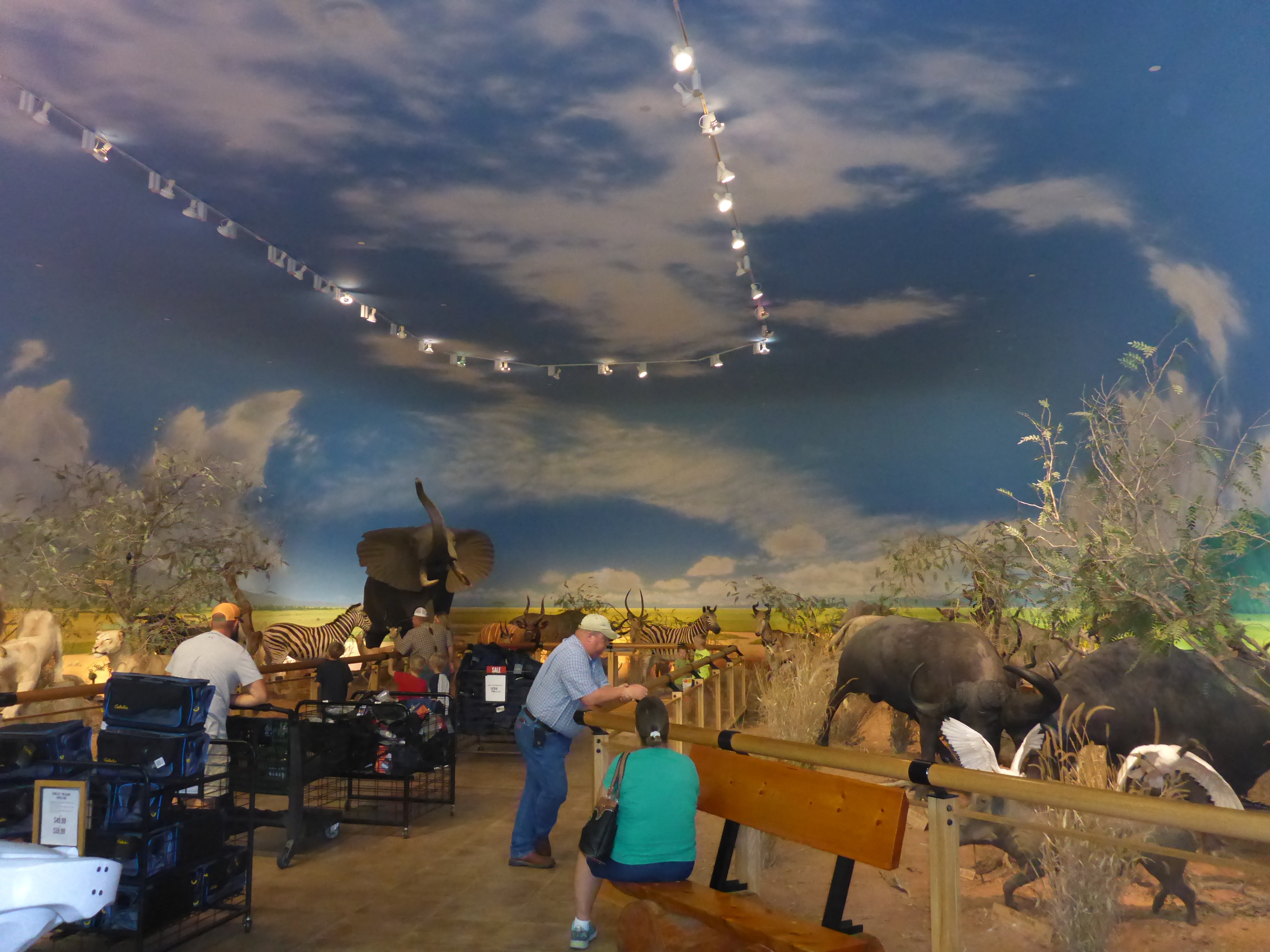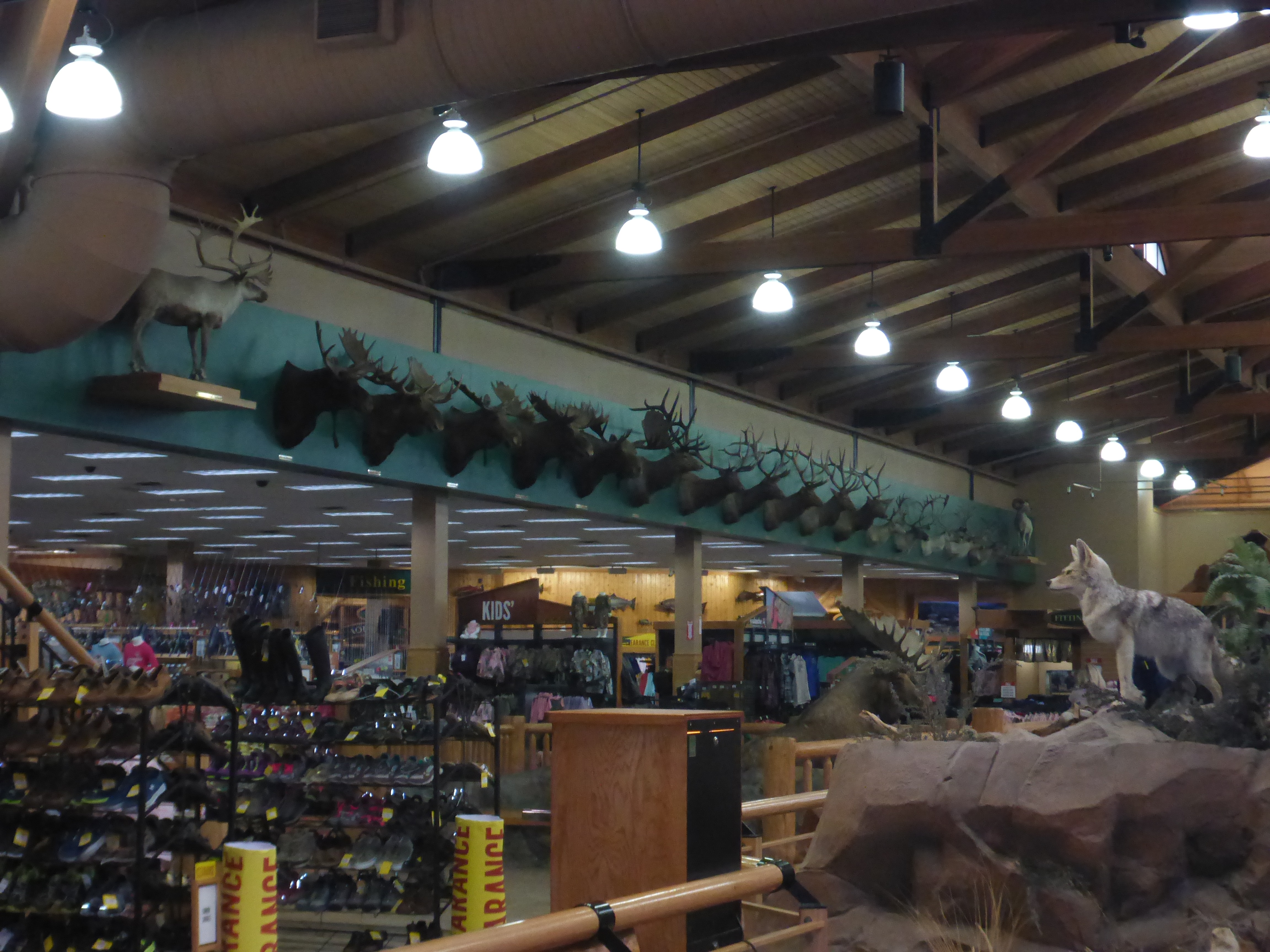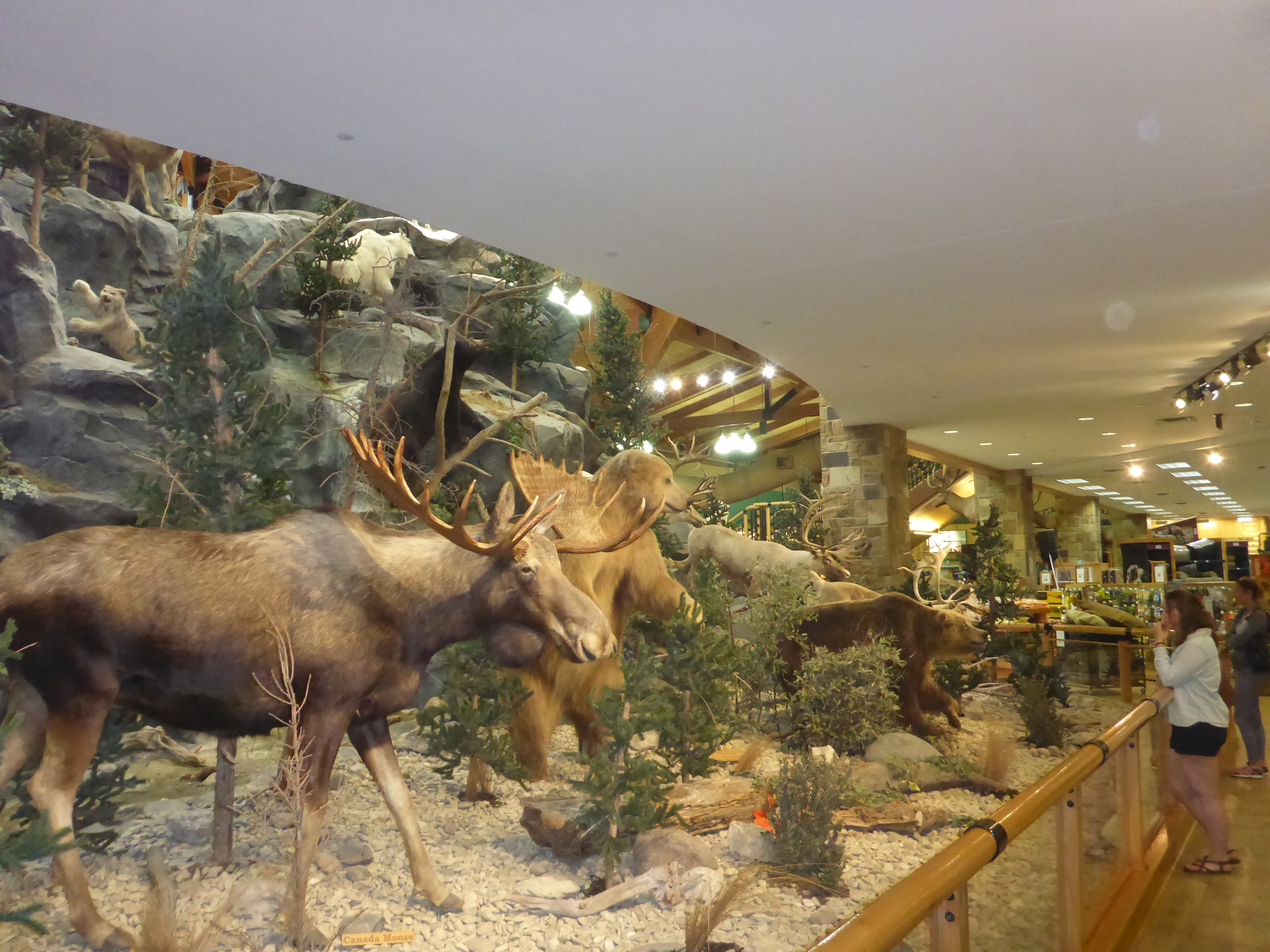 Das war auch der Grund warum wir den übernächsten Abend wieder zu einem Country Konzert gegangen sind. Doch den Tag dazwischen haben wir damit Verbracht, ein bisschen die Shoppingkultur der Texaner kennenzulernen. Zuerst sind wir in den wahrscheinlich größten Jagd/Angel/Outdoor Laden gegangen in ganz Texas. Es war wirklich ein riesen Laden mit ca. über 200 ausgestopften Tieren z.B. riesige kapitale Hirsche und Elche, die Big Five von Afrika, Braun/Schwarz und Eisbeeren, Wölfe etc. und alles in eine künstliche Landschaft eingearbeitet. Es sah wirklich echt cool aus. Dann war da so eine riesige Auswahl an Sachen. Ich würde da wahrscheinlich so viel Geld lassen, aber zum Glück hatte ich die Ausrede für mein Gewissen, dass ich kein Platz mehr im Koffer hatte. Natürlich gab es dort auch eine riesige Auswahl an Waffen, Bögen und Armbrüsten jegliche Größen Formen und Farben z.B. schön in Pink damit die 9mm auch zur Handtasche passt. Typisch USA halt…