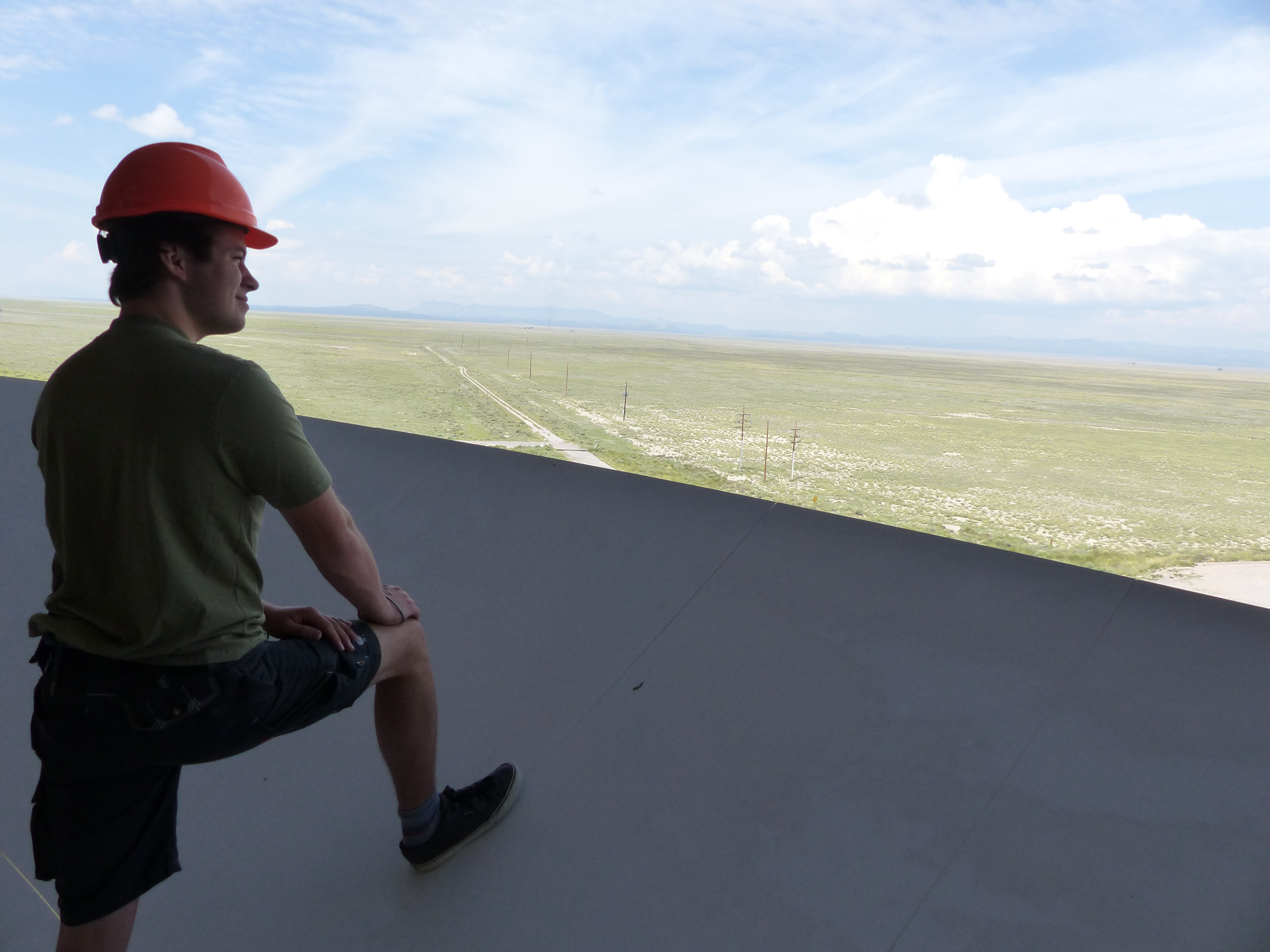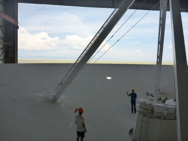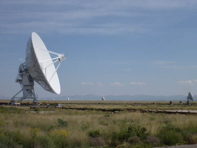 Doch dann kam die Überraschung: Er arbeitet für VLA Teleskope. Das sind 27, 28 m hohe weiße  Teleskope die wie der Mercedesstern zueinander stehen und mittels eines Schienensystems alle 9 Wochen ihre Position ändern und somit erreicht der Umfang des Sterns 4 verschiedene Größen im Laufe eines Jahres. Natürlich als wir da waren standen die Teleskope am weitesten auseinander und somit für Fotos echt ungelegen. Ihr kennt sie vielleicht aus den Filmen: Contact, Terminator, Transformas und ein Videoclip von  John Bon Jovie.Ihr Sinn besteht darin im Groben: fremde Galaxien zu erforschen und Bilder davon zu machen. Eine der Teleskope war zum Glück zu dem Zeitpunkt in der ,,Werkstatt´´,  eine riesige Halle die mit dem Schienensystem verbunden ist, sodass wir das Teleskop besichtigen konnten und bis nach oben in die Schale klettern konnten. War schon echt Imposant wie viel Technik darin Steckt und man konnte von da ganz oben super die Wüste erblicken mit ihren weißen Teleskopen die in der Ferne schimmerten.P1010114