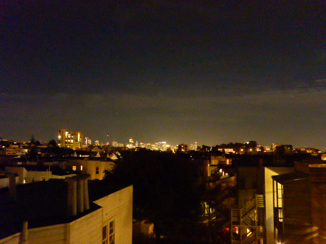 Bevor wir nach Hause gefahren sind, haben wir aber noch eine Freundin von John besucht. Sie wohnte mitten in der City und sind dann wie es hier anscheint normal ist, über die Feuerwehrleiter aufs Dach geklettert und haben uns die beleuchtete Skyline im Mondschein der Stadt angeguckt. Mir war schon ein bisschen mulmich dabei, auf das Dach dieser Holzhütten zu klettern aber sie sagte die hätten hier schon mit 40 Leuten Party gemacht. Und keine Ahnung warum eine Feuerwehrleiter aufs Dach führt….P1020173