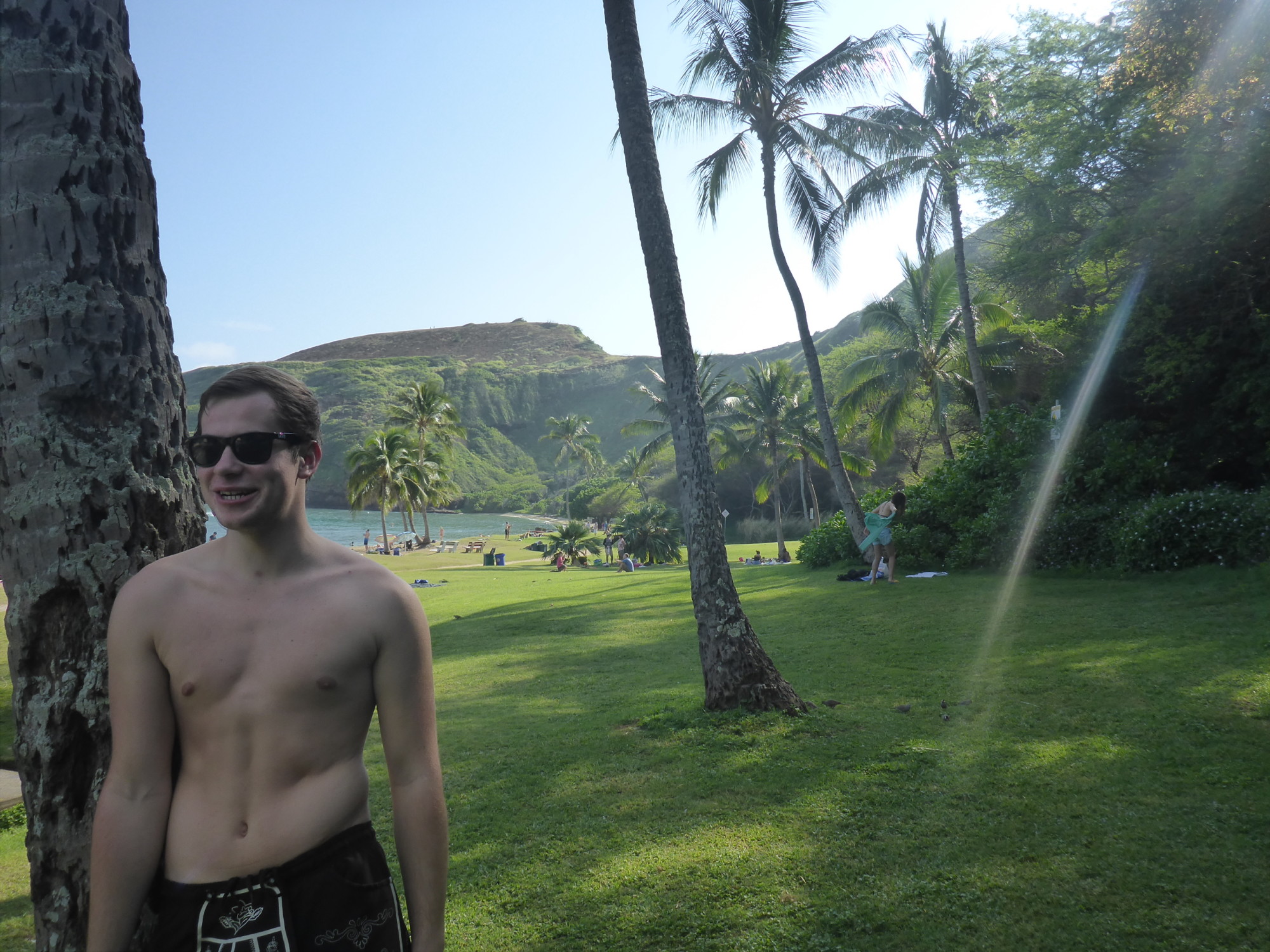 Am nächsten Tag haben wir uns für die nächsten drei Tage gemietet, ich war nicht dabei als Timon und Basti das Auto geholt haben, aber die haben es echt für nen bomben Preis bekommen. Natürlich haben wir dann den ganzen Tag damit verbracht die Ostküste hoch zu fahren um dann bis in die nördlichste spitze zu fahren und dann durch die Mitte der Insel wieder zurück. Wir hatten kein richtiges Ziel, wir haben einfach überall da angehalten wo es uns gefiel wie z.B die Lanai-bucht, eine Lavasteinbucht, es sah echt spektakulär, wie die Wellen immer davor gedrischt sind und so eine Lavafläche hat man zuvor auch noch nicht gesehen, dann war da der Makapuu- aussichtsplattform. Von dort aus konnte man echt die fast die komplette Ostküste hochgucken, wirklich beeindruckend und dann war dann noch der Waimanalobeach. Das war wirklich ein Tropenstrand wie man ihn sich vorstellt: weißer Sand, das Wasser nochmal ne Nummer Blauer als der Waikikibeach, fast keine Menschenseele, kilometerlang und im Hintergrund fast nur Dschungel und Berge! Wir waren uns alle einig: der schönste Strand der Insel!!!