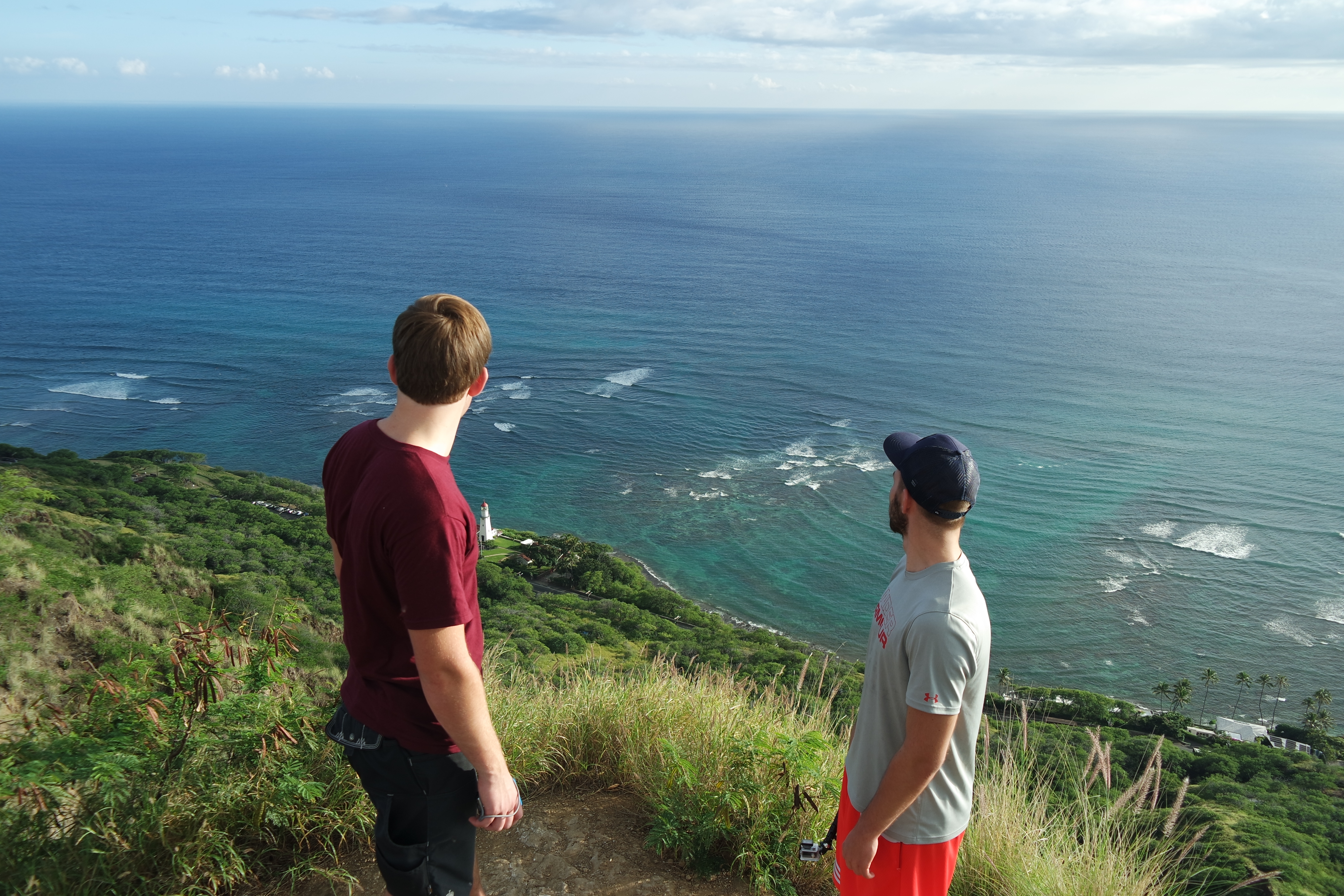 Am nächsten Tag haben wir uns für die nächsten drei Tage gemietet, ich war nicht dabei als Timon und Basti das Auto geholt haben, aber die haben es echt für nen bomben Preis bekommen. Natürlich haben wir dann den ganzen Tag damit verbracht die Ostküste hoch zu fahren um dann bis in die nördlichste spitze zu fahren und dann durch die Mitte der Insel wieder zurück. Wir hatten kein richtiges Ziel, wir haben einfach überall da angehalten wo es uns gefiel wie z.B die Lanai-bucht, eine Lavasteinbucht, es sah echt spektakulär, wie die Wellen immer davor gedrischt sind und so eine Lavafläche hat man zuvor auch noch nicht gesehen, dann war da der Makapuu- aussichtsplattform. Von dort aus konnte man echt die fast die komplette Ostküste hochgucken, wirklich beeindruckend und dann war dann noch der Waimanalobeach. Das war wirklich ein Tropenstrand wie man ihn sich vorstellt: weißer Sand, das Wasser nochmal ne Nummer Blauer als der Waikikibeach, fast keine Menschenseele, kilometerlang und im Hintergrund fast nur Dschungel und Berge! Wir waren uns alle einig: der schönste Strand der Insel!!!