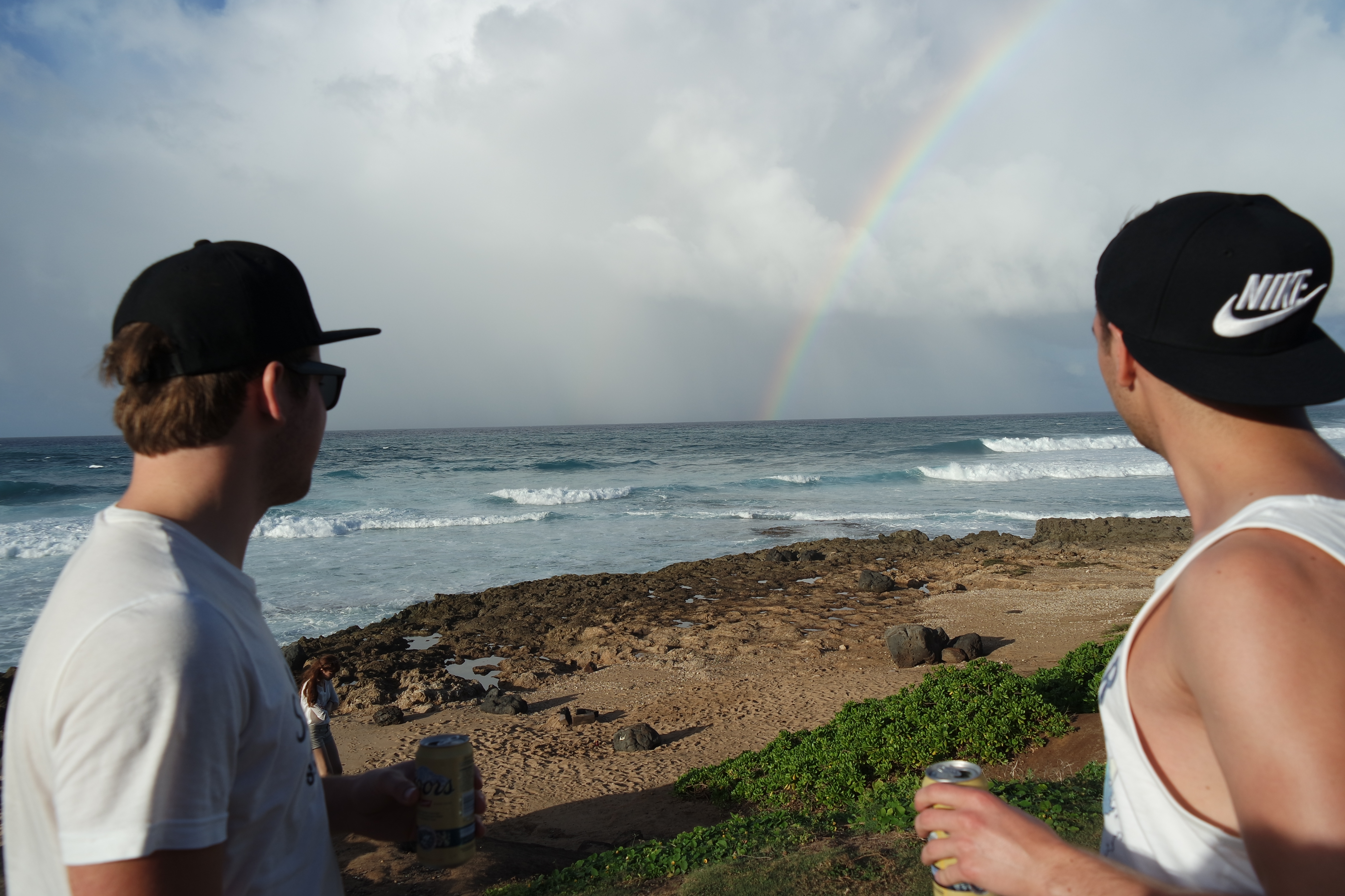 So gegen späten Nachmittag war das Sportereignis zu Ende und wir sind zu einem Süßwasserfall ganz in der Nähe gefahren wo man drin schwimmen konnte. War echt eine willkommene Abwechslung, da ich das Salzwasser ja eig. gar nicht gewohnt bin. Zum Ende hin des Tages sind wir bis ganz in den Nord Ost gefahren zum Kaena Point um dort uns die Sonne unter einem Regenbogen anzugucken. Man sagt hier: Wenn man ein Regenbogen auf Hawaii gesehen hat, ist das ein Zeichen das man wieder kommt! Ich hoffe doch dass es stimmt weil es echt schön war.
