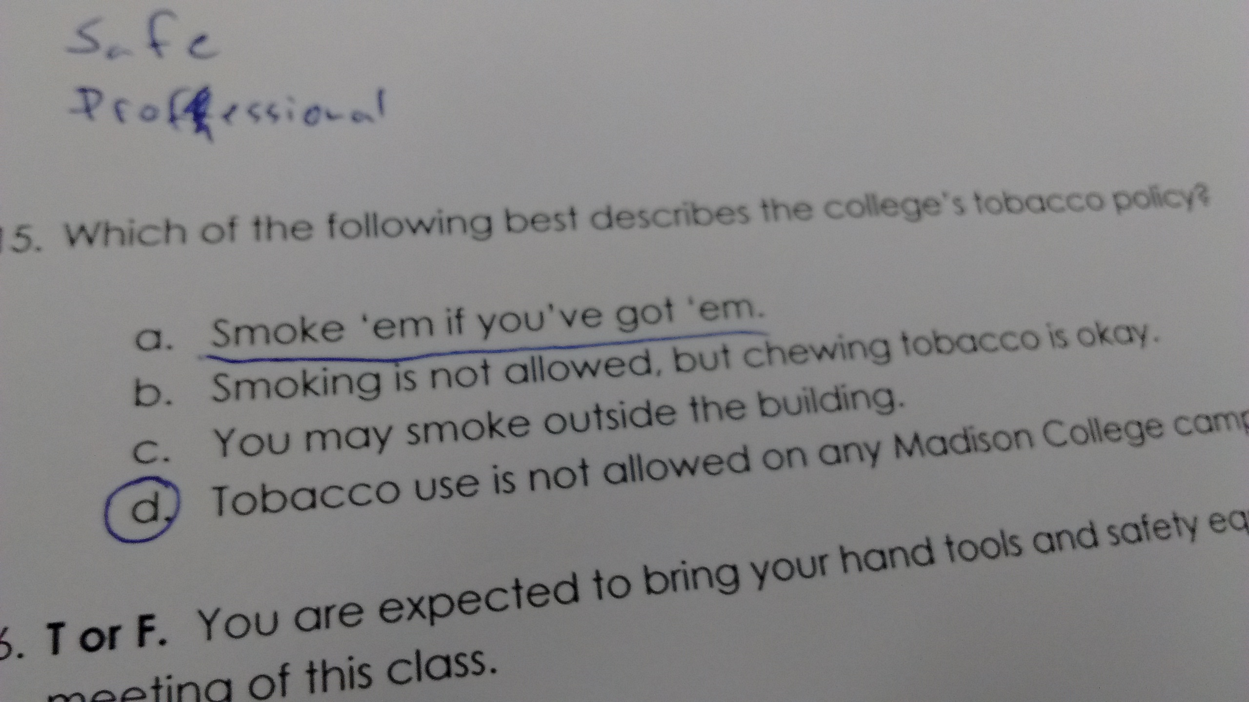 Das war im Quiz zum Thema Arbeitsplatz, Werkstatt, Sicherheit, Verhalten etc: