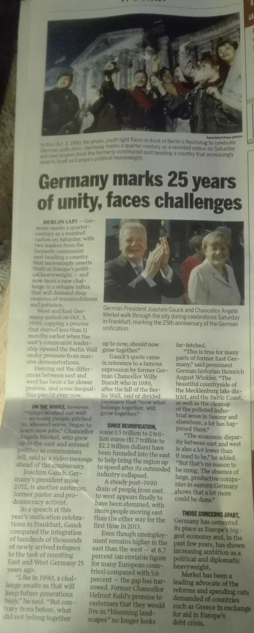 Am nächsten Tag stand der nächste Ausflug des „International Clubs“ an. Wie zuvor schon in einem Facebook-Post erwähnt, war es für mich nicht nur ein Tag der deutschen Einheit – noch einmal ALLES GUTE nachträglich liebes Deutschland für ein viertel Jahrhundert – sondern eher ein Tag der globalen Einheit (auch in der lokal Presse war ein gar nicht mal so kurzer Artikel zu lesen). Warum das so war könnt ihr am Besten auf dem Beitragsbild sehen 🙂 Aber was haben wir eigentlich an diesem Tag gemacht? Wir waren in Clear Lake, dem Nachbarort von Mason City und haben das dortige Harvest-Festival besucht. Man kann dies wohl am besten mit einem Bauernmarkt vergleichen. Das Highlight des Tages war dann das Pumpkin Rolling. Hier gilt es in einem vierer Staffel Team einen Kürbis viermal über eine bestimmte Distanz zu spielen, wie einen Fußball. Unser Team hat selbstredend gewonnen und jeder von uns hat einen 25$ Wertgutschein bekommen. Diesen haben wir uns aber auch redlich verdient. By the way, es war auch mein erstes eigenes „verdientes“ Geld in den Vereinigten Staaten.