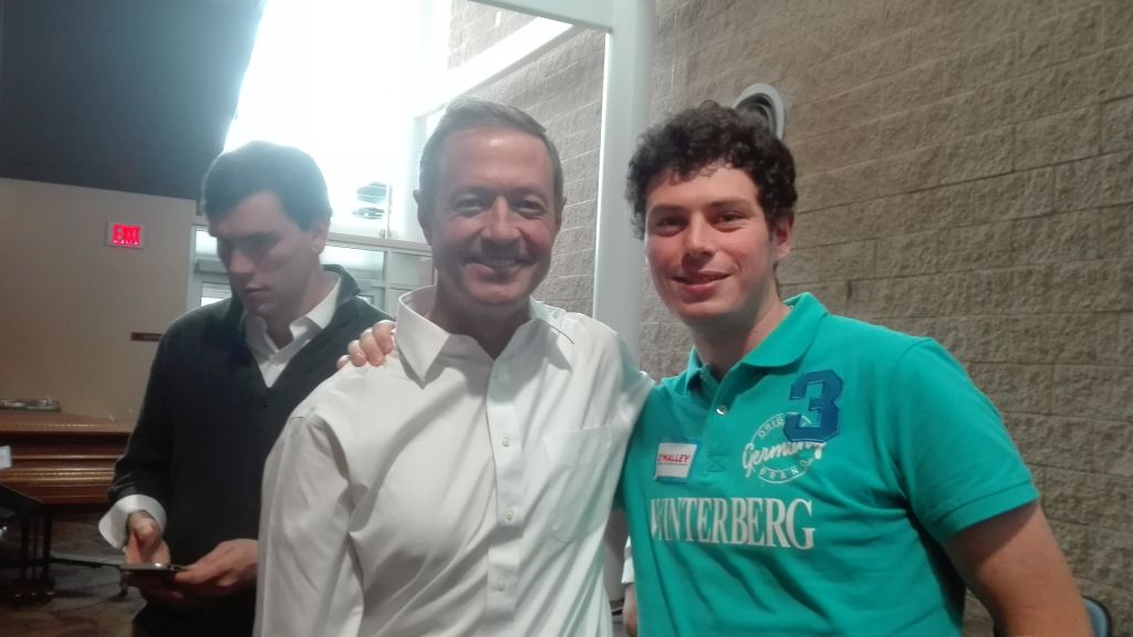 Mein persönliches Highlight kommt aber zum Schluss. Ich habe mir nämlich alle Mühe gegeben auch weiterhin ein guter Präsidentschaftskandidaten-Groupie zu sein. So konnte ich an Halloween den republikanischen Kandidaten Marco Rubio in Mason City live erleben. Was allerdings noch viel wichtiger war, am 24.10. war Martin O’Malley in der Nähe. Auch wenn er leider nicht so bekannt ist – ich glaube erst recht nicht in Deutschland – ist er für mich der beste Kandidat bisher. Ich weiß, dass ich auch von Sanders in hohen Tönen berichtet habe, und ich finde seine Linie immer noch gut, aber O’Malley ist noch mal was anderes. Er hat im Prinzip das gleiche Programm wie Sanders, bringt dies aber glaubwürdiger und fundierter rüber. Das liegt auch vor allem daran, dass er nicht bei jedem Auftritt immer wieder die gleichen Daten, Fakten und Prozentstatistiken wiederholt. Ihr solltet euch wirklich O’Malley mal etwas genauer ansehen. Ich glaube auch für Europa wäre es der beste Kandidat, da er z.B. zu Themen wie TTIP klar Stellung auf meine Frage bezogen hat. So befürwortet er solche Verträge unter der Voraussetzung, dass diese für jeden zugänglich und verständlich sind und auch bestimmte Auflagen eingehalten werden, z.B. in Sachen Umwelt. Sein ehrgeiziges Ziel ist es Amerika bis 2050 unabhängig von fossilen Energieträgern zu machen. In Iowa kommen z.B. schon jetzt 30% der Elektrizität aus Windenergie. Das er nicht so bekannt ist, hat auf der anderen Seite auch Vorteile. So hat er sich am Ende seiner Rede noch mehr Zeit nehmen können als andere Kandidaten und ist noch mehr mit dem Publikum in Kontakt getreten. Das genialste war, dass er zum Schluss auch noch 2 Lieder auf der Gitarre gespielt hat 🙂