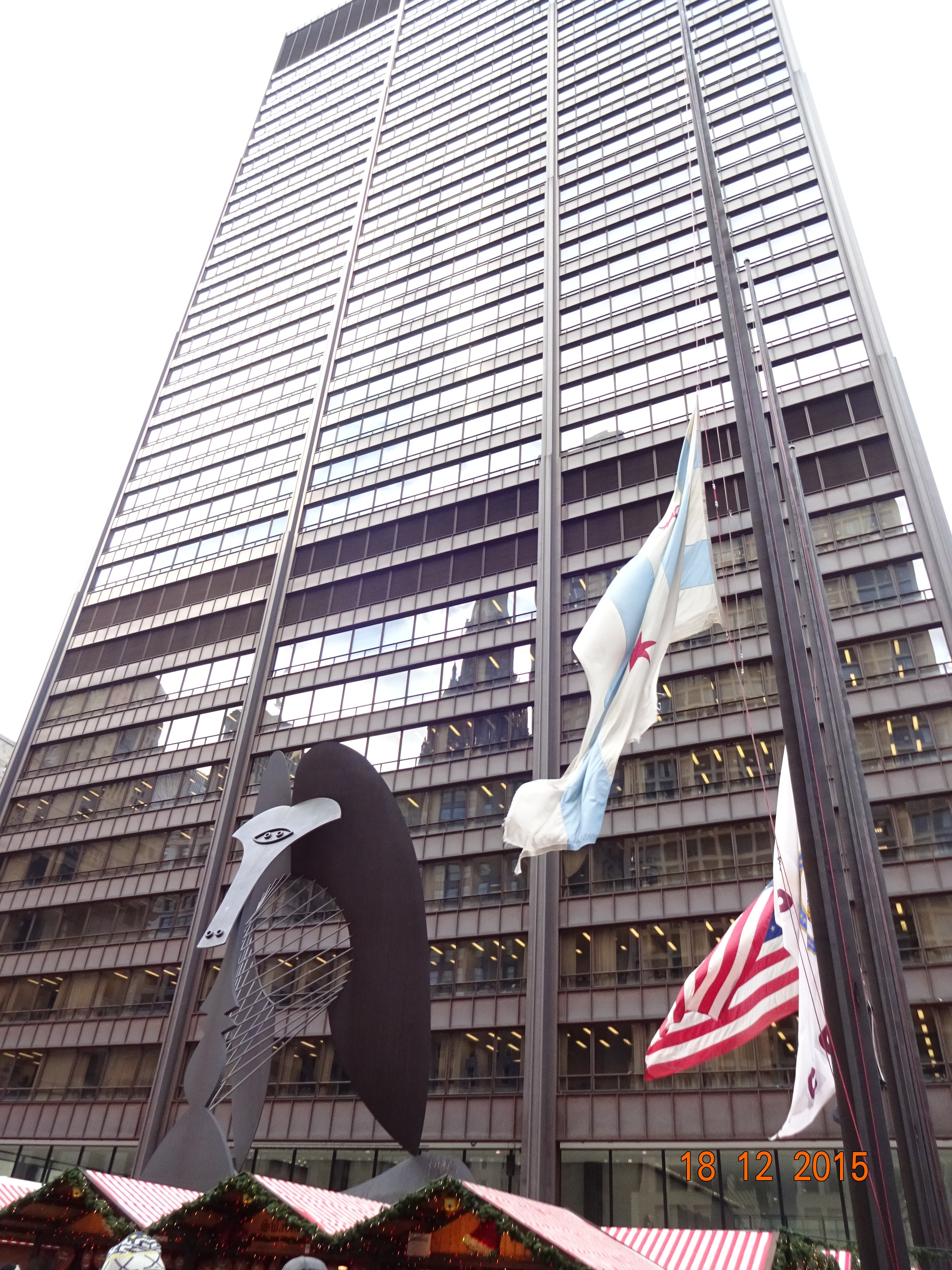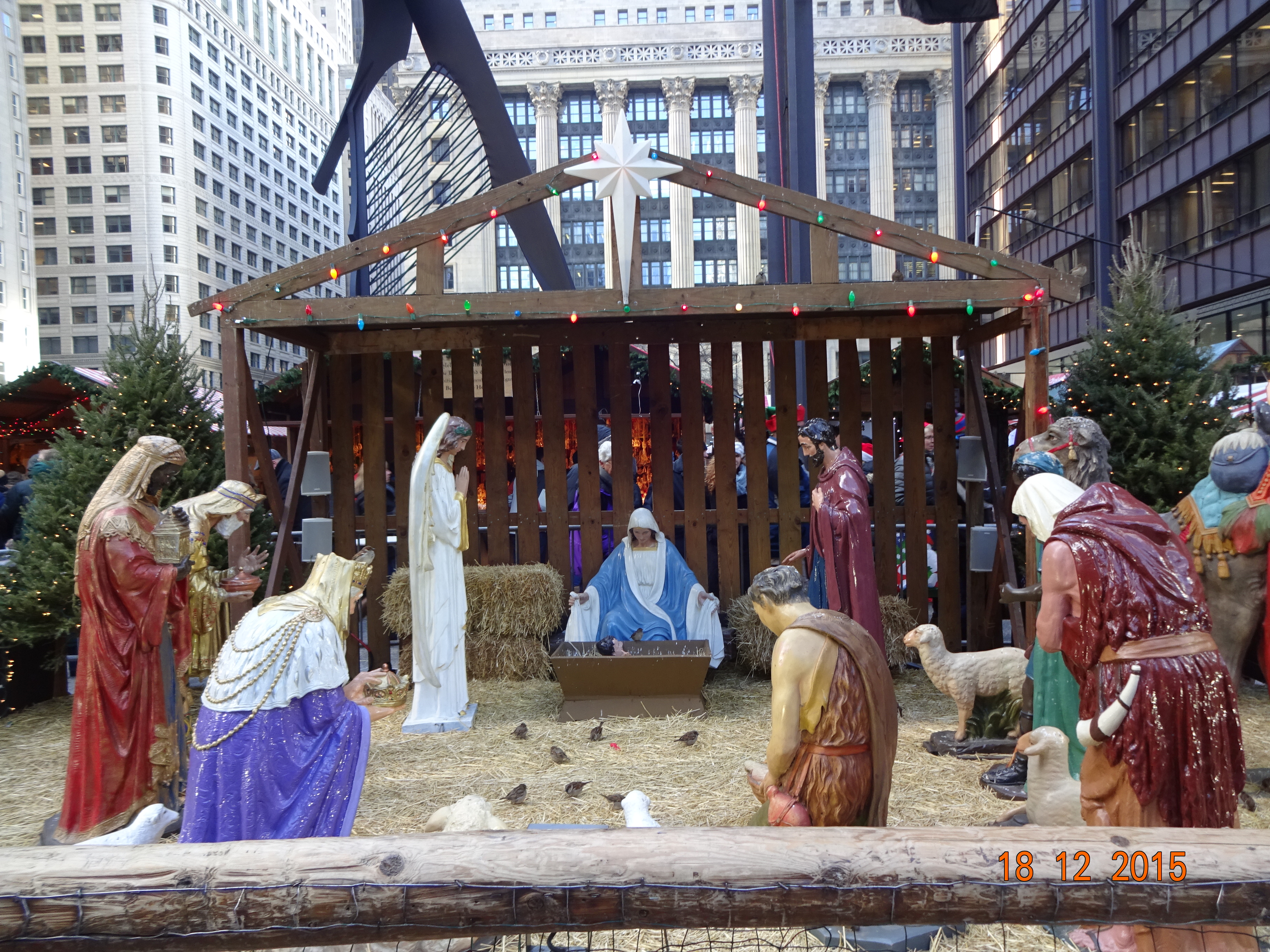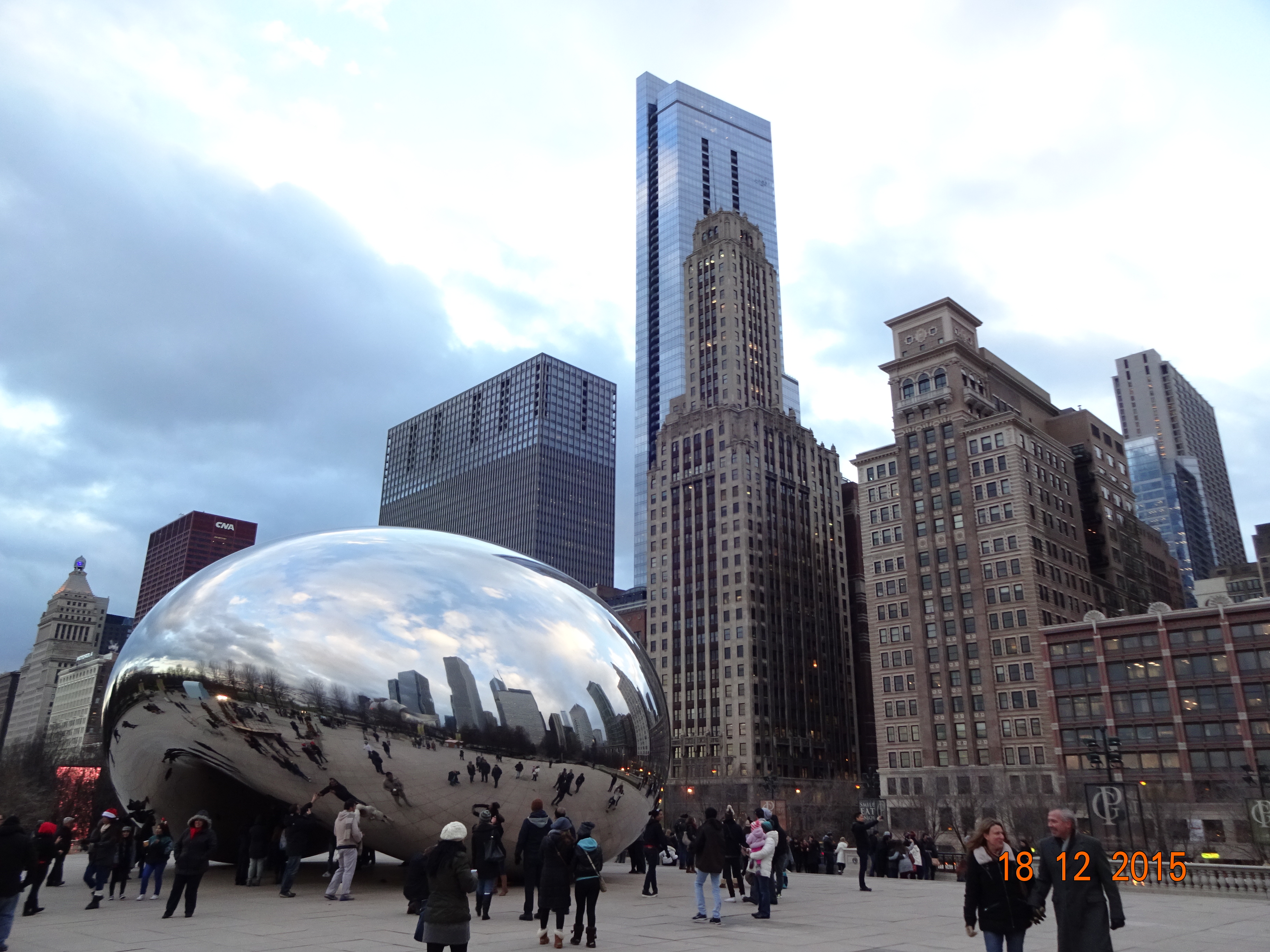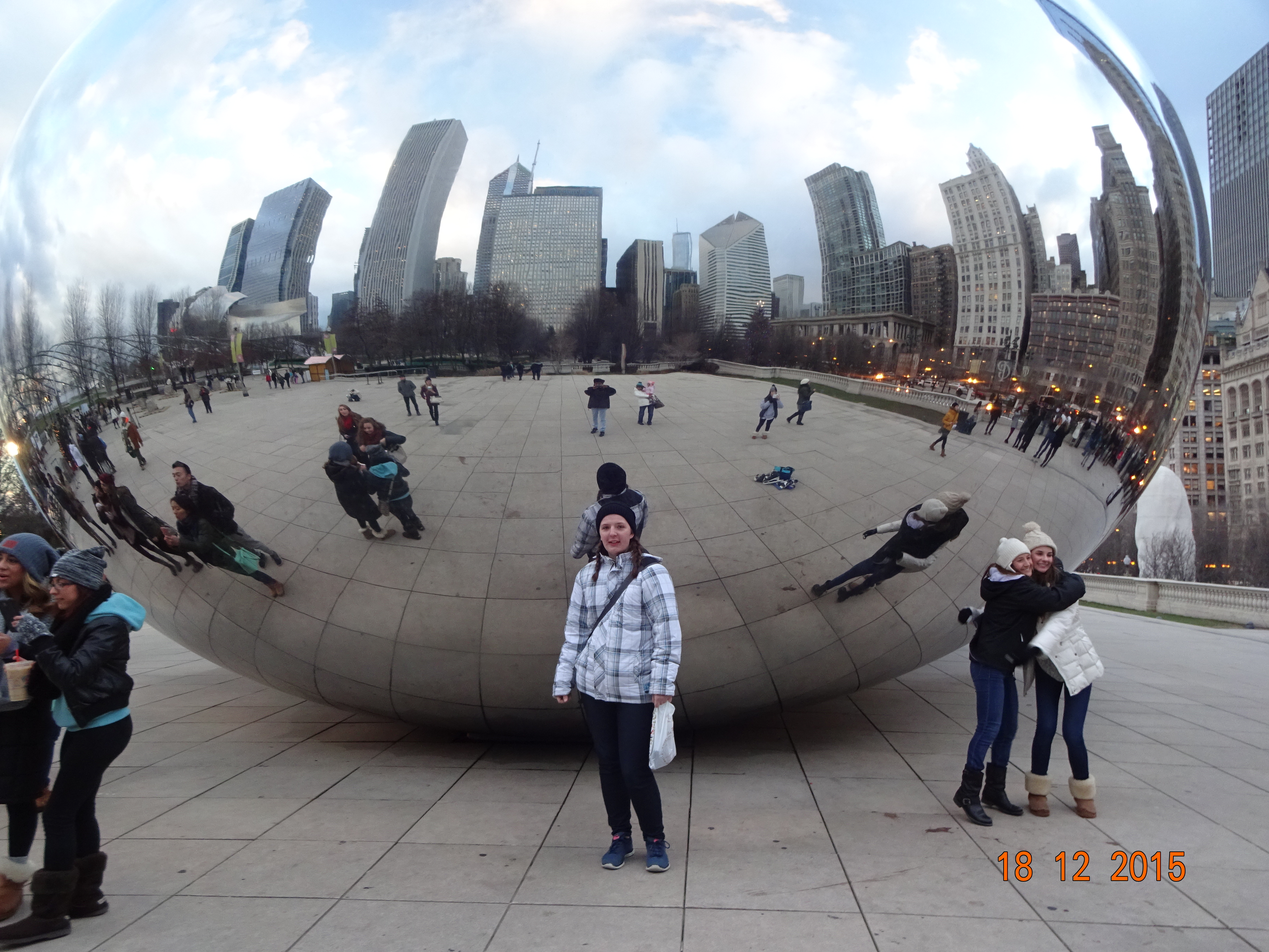 Der Bus kam überpünktlich und dann hatte ich eine vierstündige Fahrt vor mir. Ich war sehr froh, dass ich den Bus genommen hatte, denn den Weg nach Chicagodowntown hätte ich nie gefunden, so viele Baustellen wie da sind und die ganze Zeit vier Spuren und Abfahrten…. In Chicago bin ich dann erstmal zum Hostel gegangen, um mein Gepäck auf’s Zimmer zu bringen, hatte ich zumindestens mal geplant. Aber leider war mein Zimmer noch nicht fertig und ich sollte später nochmal kommen. Eine Rettung hatte ich aber noch, mein Gepäck nicht mitzuschleppen, das Hostel hat Schließfächer. Doch halt, da hatte ich mein nächstes Problem, ich hatte kein Schloss dabei. Also erstmal im nächsten Shop ein kleines Schloss gekauft, Sachen verstaut und dann auf die Suche nach dem Weihnachtsmarkt gemacht.
