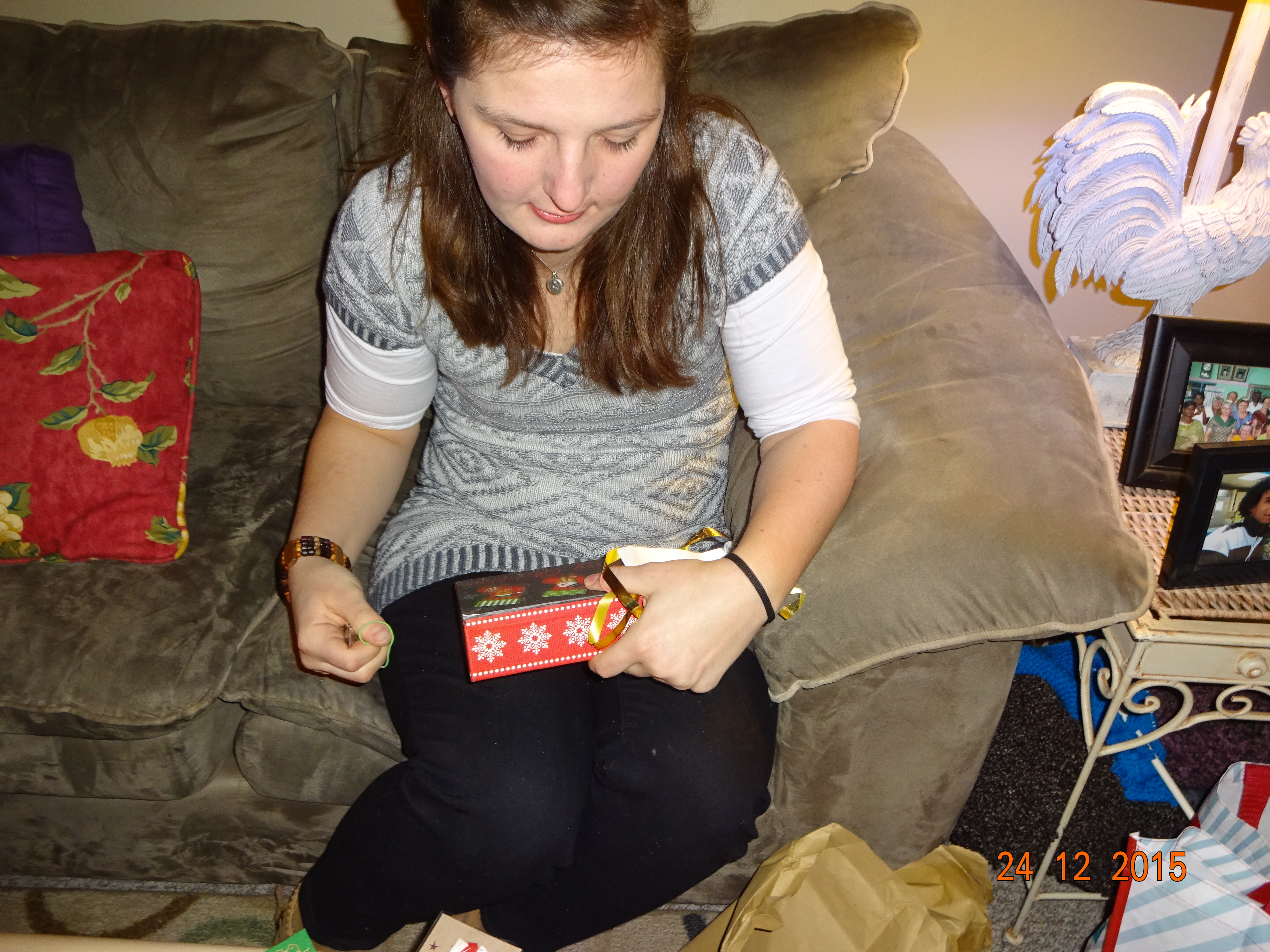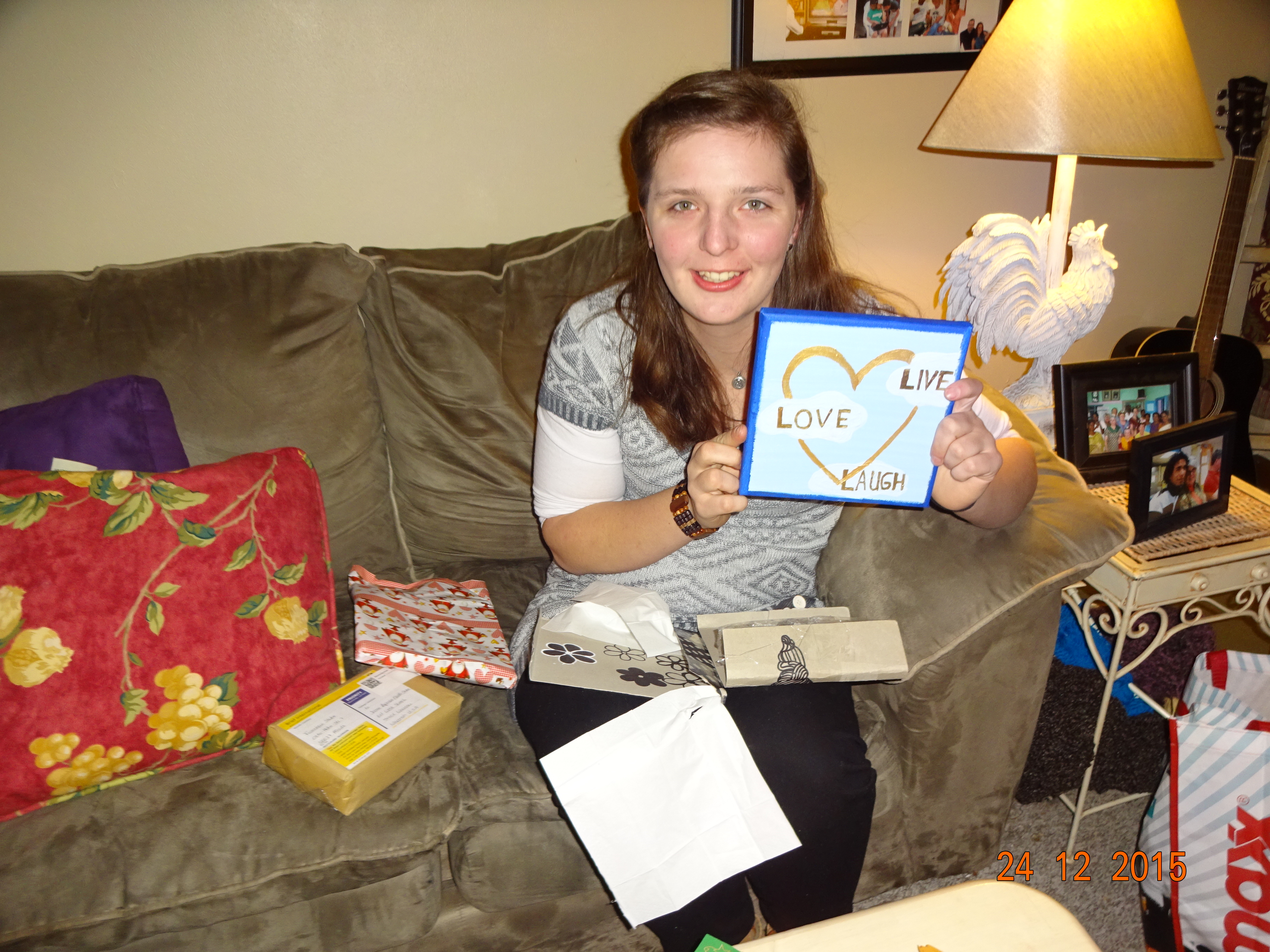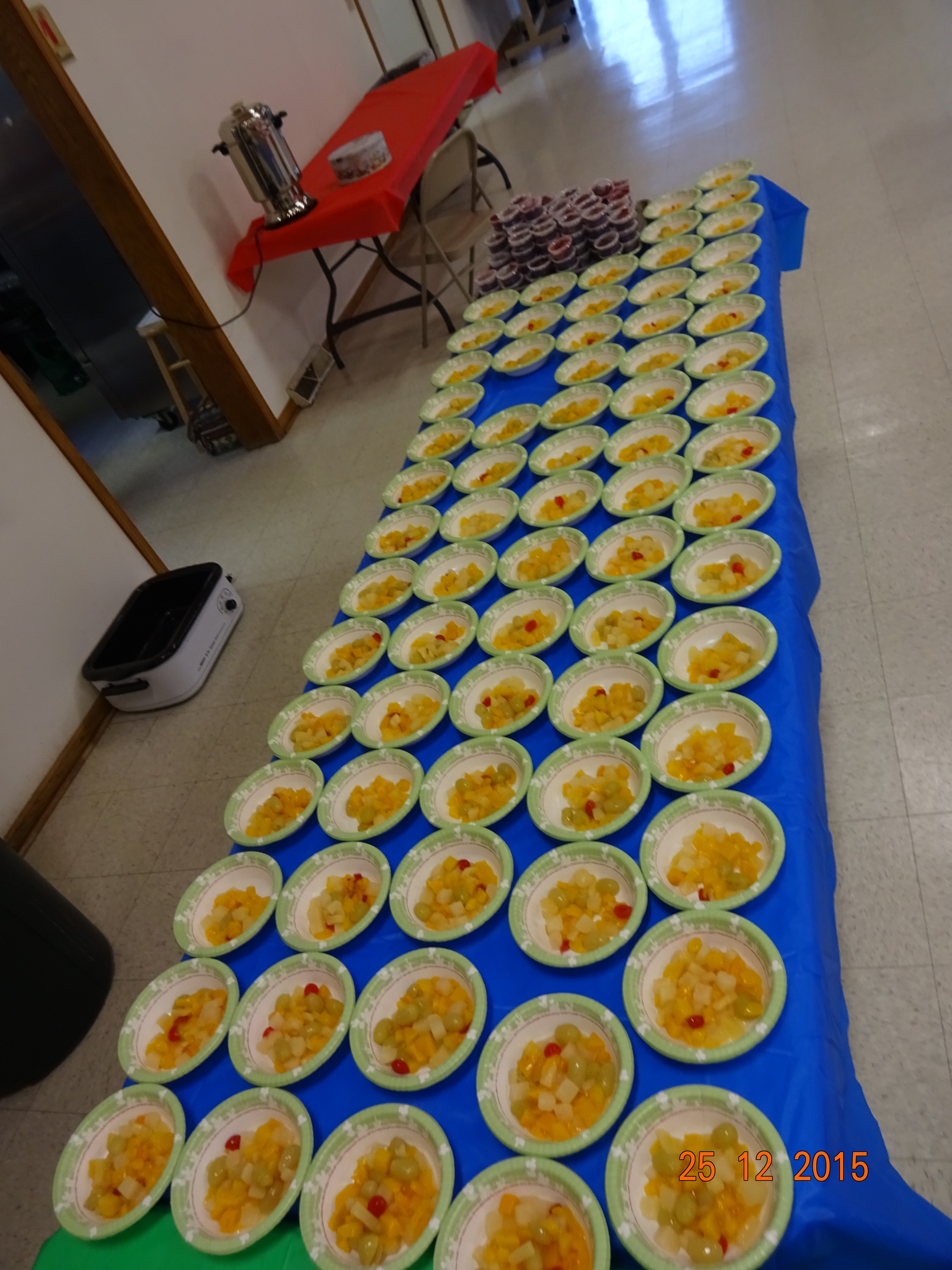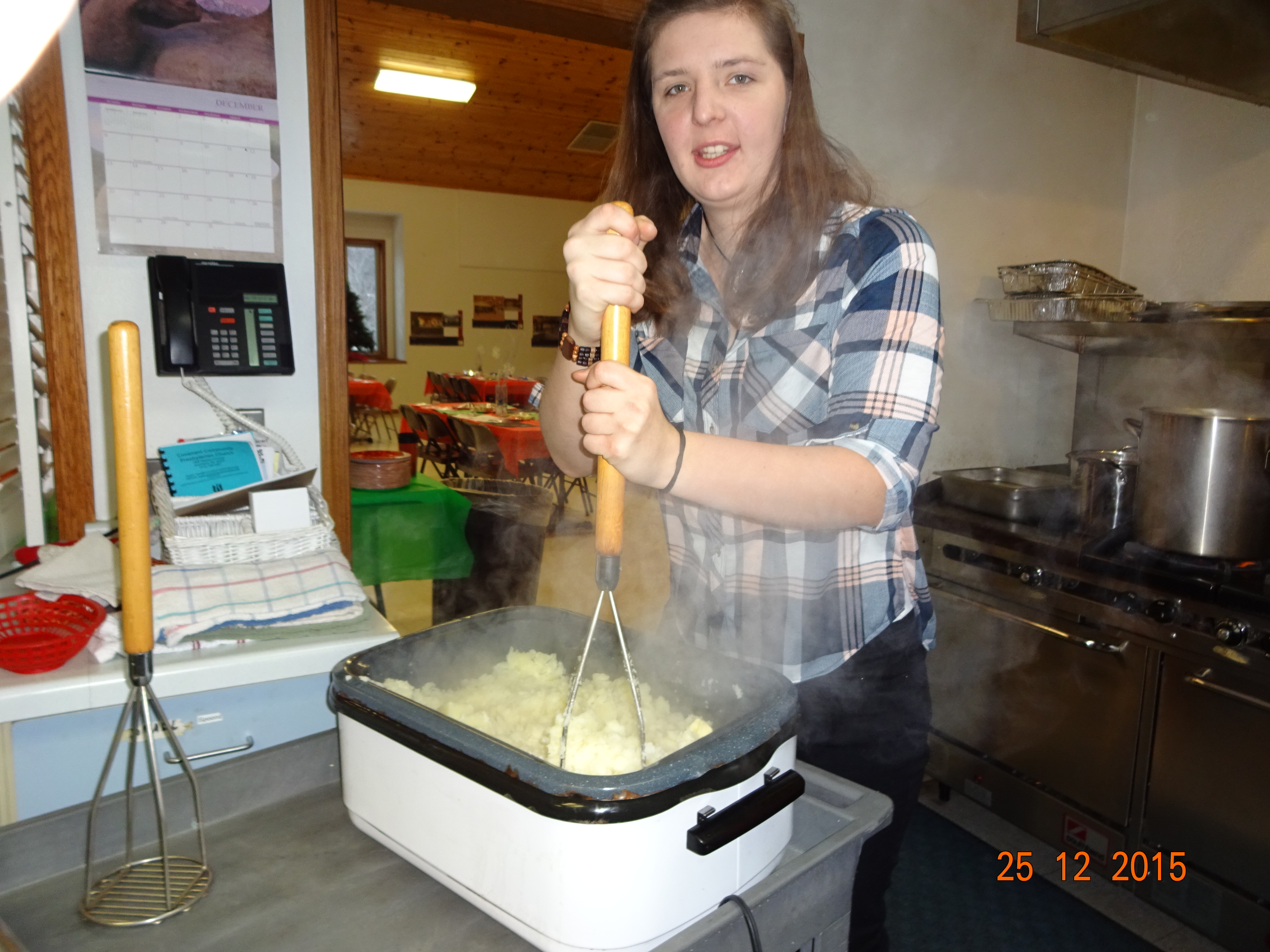 Nach dem ich aufgestanden bin und gefrühstückt hatte, habe ich erstmal meine Familie angerufen, da es bei ihnen ja schon später war und das Fest schon im vollen Gange war. Meine Hostmom musste den ganzen Tag arbeiten (11am-6:30pm). Da ich keine Lust hatte, alleine zu Hause zu sein und wir in der Kirche morgen Christmasdinner haben, habe ich beschlossen in die Kirche zu fahren und bei den Vorbereitungen zu helfen. Es werden 100 Mahlzeiten zu Familien gefahren und dann gibt es auch Familien, die in der Kirche essen kommen. Wir haben heute die Sachen für die Familien vorbereitet, die das Essen nach Hause bekommen. Jeder bekommt ein Brötchen mit Butter und eine Tüte mit Cookies. Außerdem haben wir schon mal die Cranberrys für’s Turkey abgefüllt und auch die Früchte. Natürlich mussten auch schon mal die Kartoffeln gepellt werden, damit sie morgen nur noch gekocht und zu Kartoffelbrei gemacht werden müssen. Die Turkeys wurden auch heute schon gemacht, da sie um die 5-6 Stunden brauchen. Nach dem wir die ganzen Sachen vorbereitet hatten, bin ich dann nochmal nach Hause. Gegen 5 Uhr, bin ich dann wieder in die Kirche, aber dieses mal zum Gottesdienst. Es war sehr, sehr schön. Der Chor und der Kinderchor haben gesungen und zum Lied Stille Nacht, haben wir genauso wie bei uns, eine Kerze angezündet und die Lichter ausgemacht.