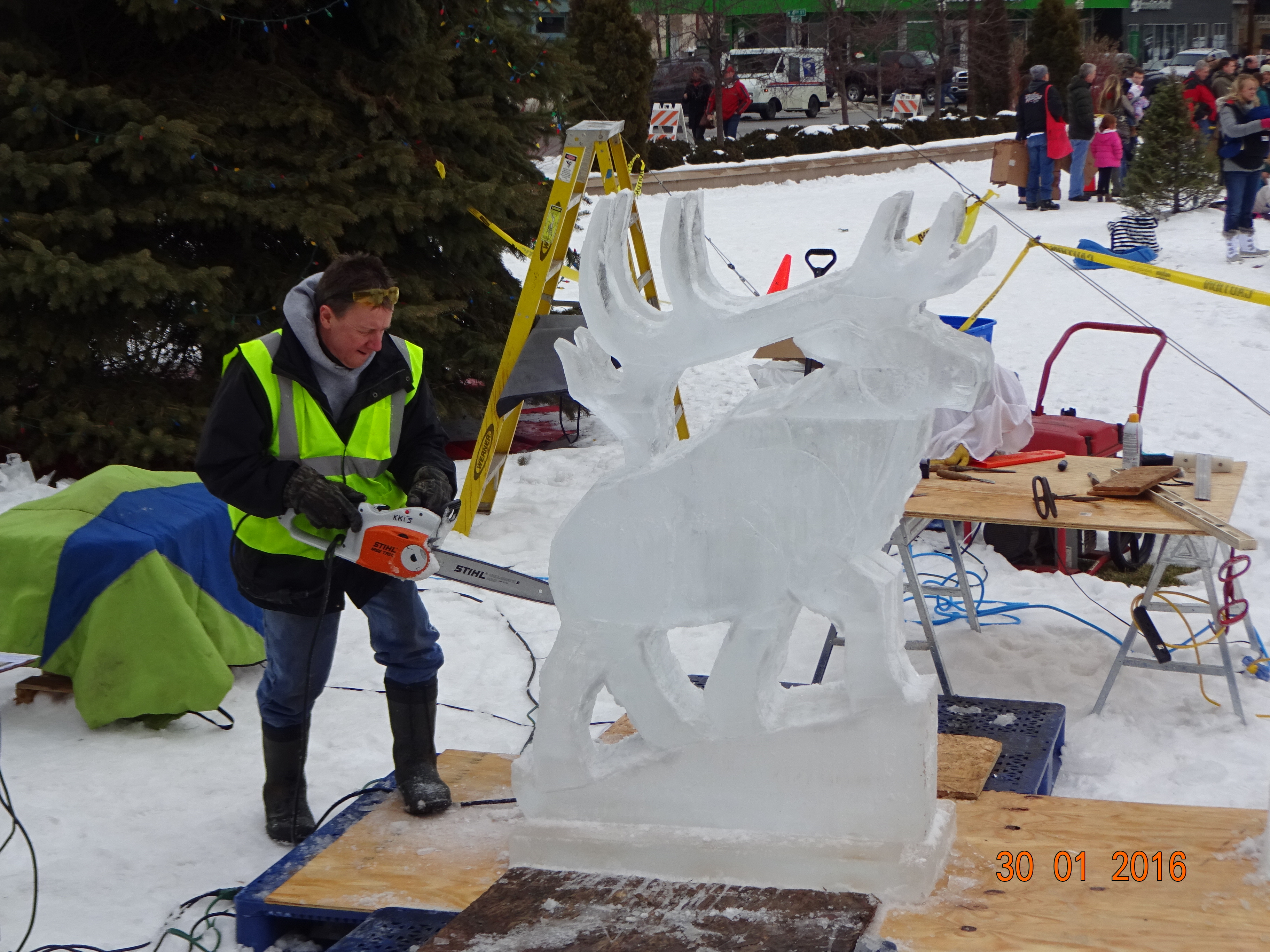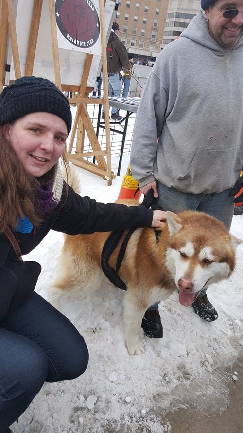 Heute war ich mit Steve und Zeineb in Downtown Wausau. Dort waren Huskies, die mit ihren Besitzern gezeigt haben, wie viel Pounds sie eine Strecke ziehen können.
